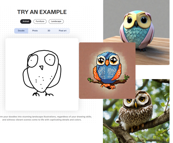 只需画几个线条就能生成照片还有不同的风格,不管是动物还是风景,简单涂鸦都可以轻松生成